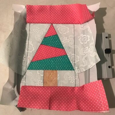 She constructed the rest of the tree in the same way; each shape is placed, stitched, folded over the construction stitch line, and pressed, carefully following the order in her plan.