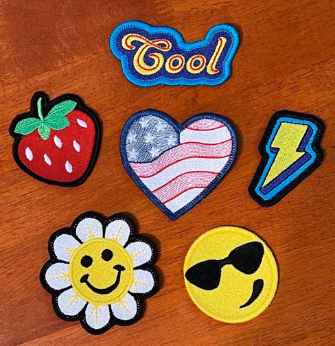 Each of these patches has the lovely faux overlock edge available both in stock shapes and contour wraps from our PatchArtist software or as a custom stitch type for any border shape in Stitch Artist Level 3. This edge gives any patch the look and feel of a real, vintage emblem! Not to show her age, but Lisa admits that she had a few of these classic overlock-edged badges back in the day and hand stitched them on the back pockets of her bell bottoms and her bicycle banana seat. Like Lisa, your kids may even want to collect them and trade with their friends. Those mass-produced patches were cool, but with our modern embroidery machines and tools from Embrilliance, we can easily make and modify pretty patches like these ourselves!