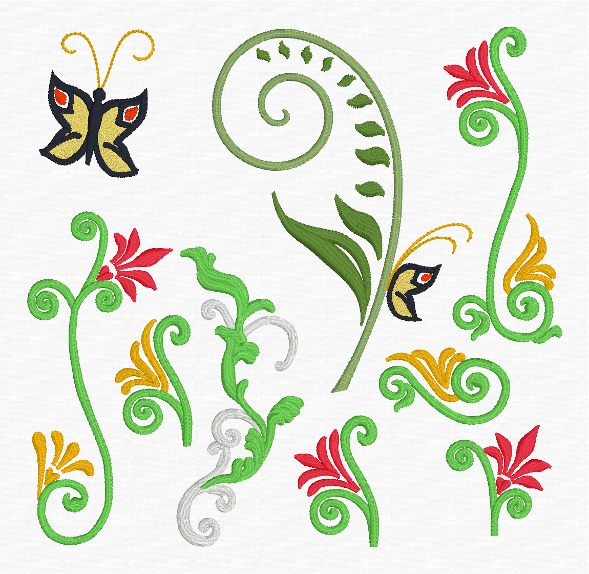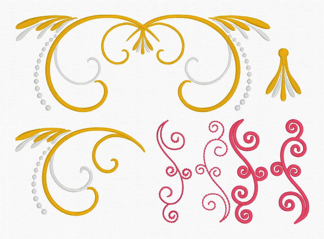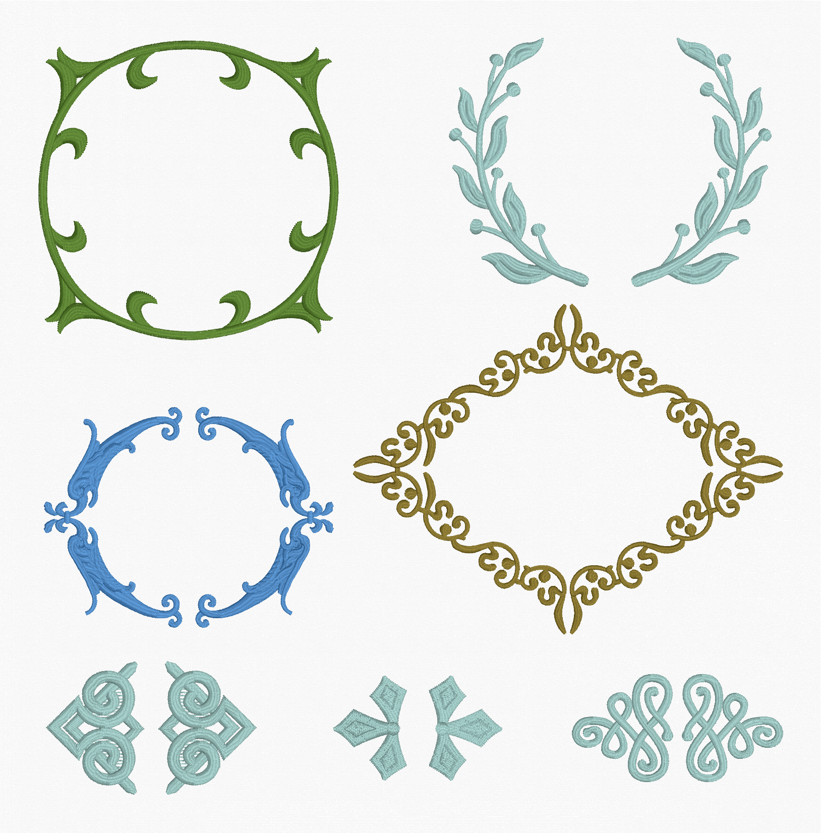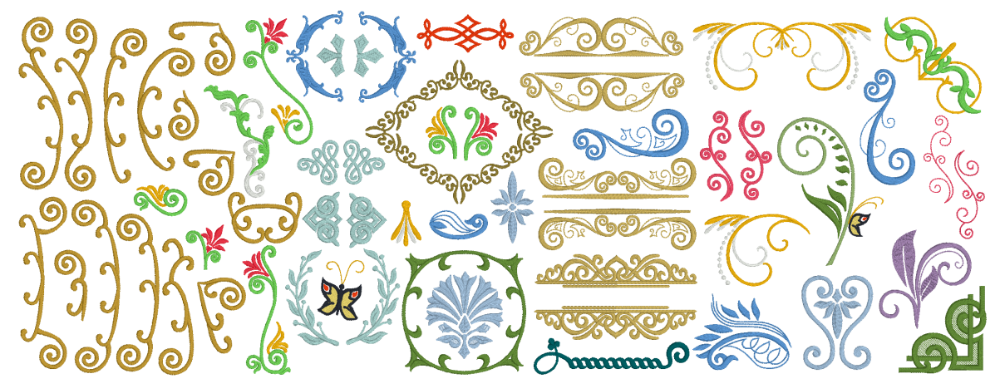 In addition to the fonts, we revamped the decorations and added scrolls, corners, monogram frames, and the ever popular split ‘Name Frames‘. Create stunning, hoop-filling setups for any personalization, from a single letter to the type of last-name layout seen so frequently in home decor. From font-matching Flourishes and the flower-laden Garden section, to the Ornamental medallions and show-stopping Swirls, the Renaissance Faire Collection library is packed with versatile design elements you can mix and match to luxurious effect.