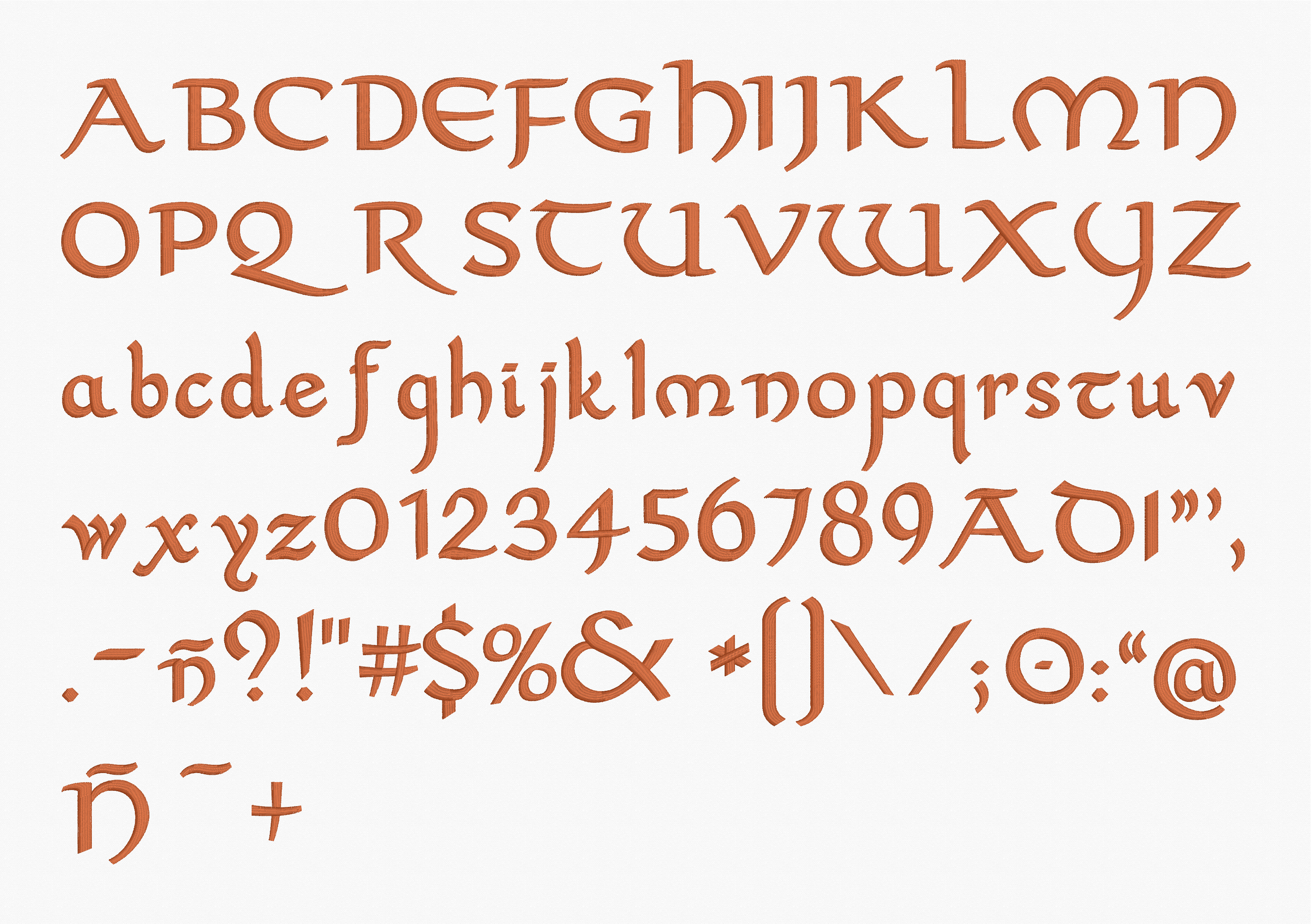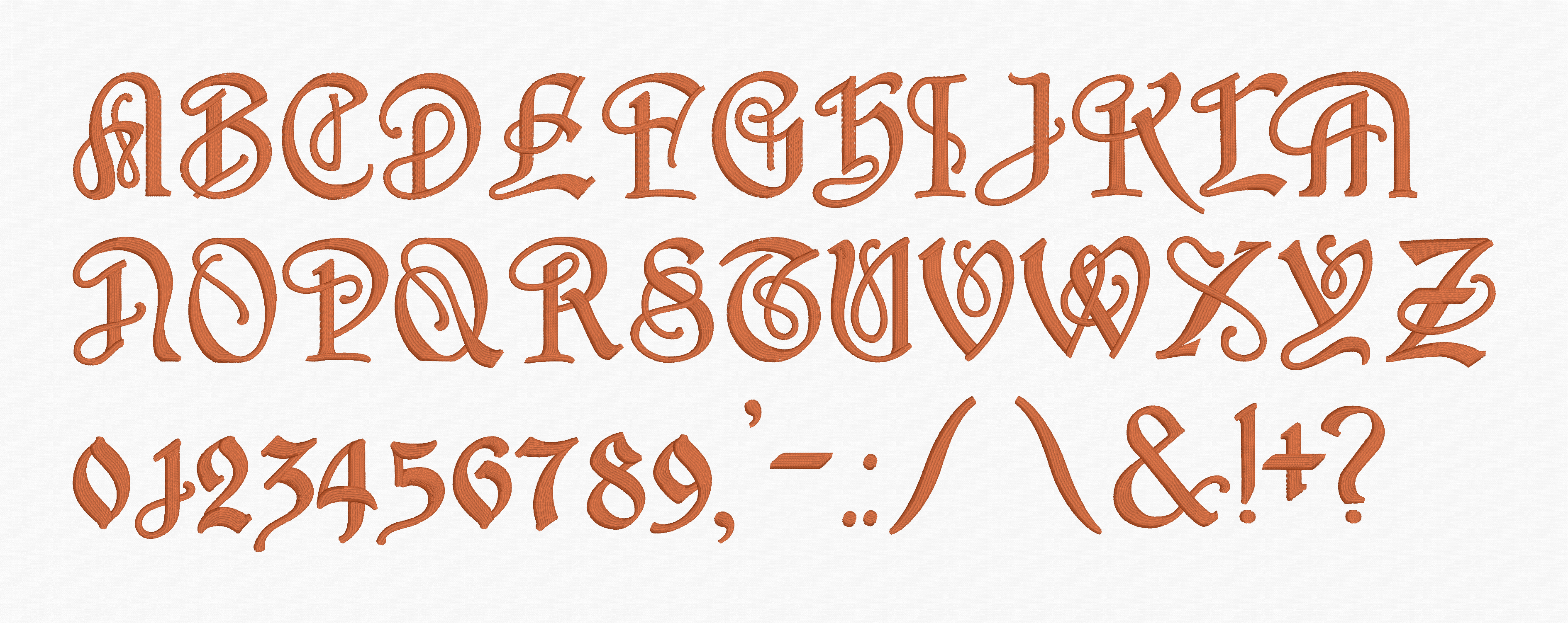 As wonderful as the original typefaces turned out, we expanded the collection even more. We started by resurrecting and expanding 2 favorites from the classic Monogram Wizard catalog, creating new versions of Fairytale and Musical. Ren Fairytale and Ren Musical now include a wider range of punctuation, numerals, and even some stylistic alternate characters to make the most confusing specialty characters easier to read. These fonts now have the same clean shapes as our other collections, allowing them to stitch at a wider range of sizes.
