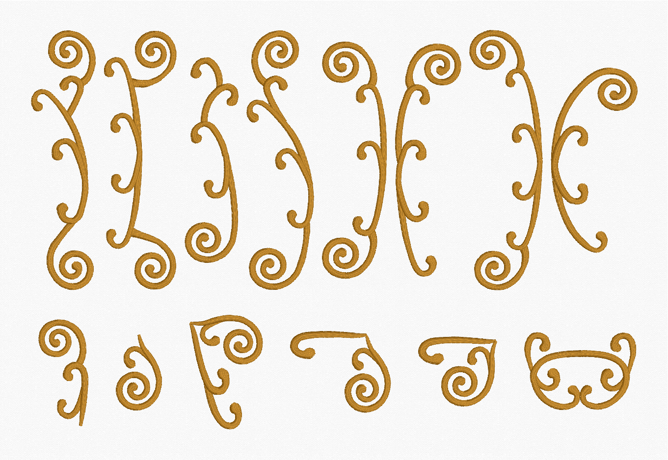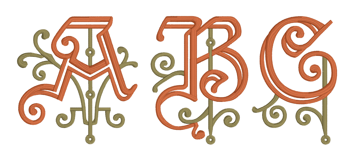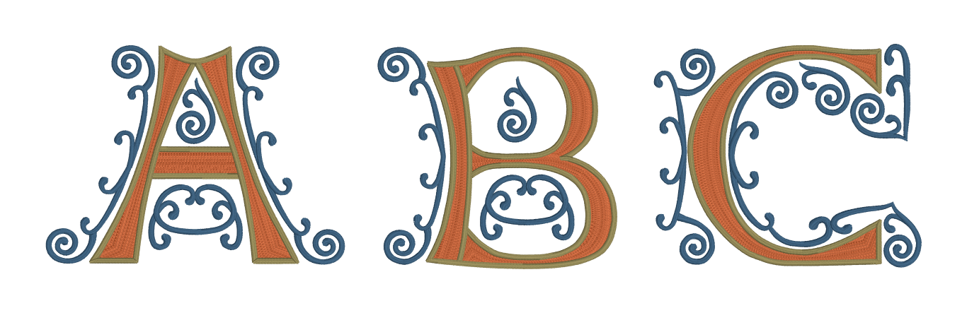 The Embrilliance platform has always automatically switched to textured fills when letter sizes are impractical for satin stitches. For the size range of these fonts, however, we spent a lot of time refining the shapes in the content. From the daunting and detailed Ren Iron, Ren Scroll 3C, and Ren Scroll 2C as well as the simpler, but no less lovely, Ren Morgan and Ren Horst, these fonts maintain their sumptuous, smooth curves even when scaled up to a full 12″ (300mm) in height. The typefaces alone are a stunning value, providing scalable, native version of letters exceeding the function and appeal of traditional large monograms offered as standard stitch-file designs.