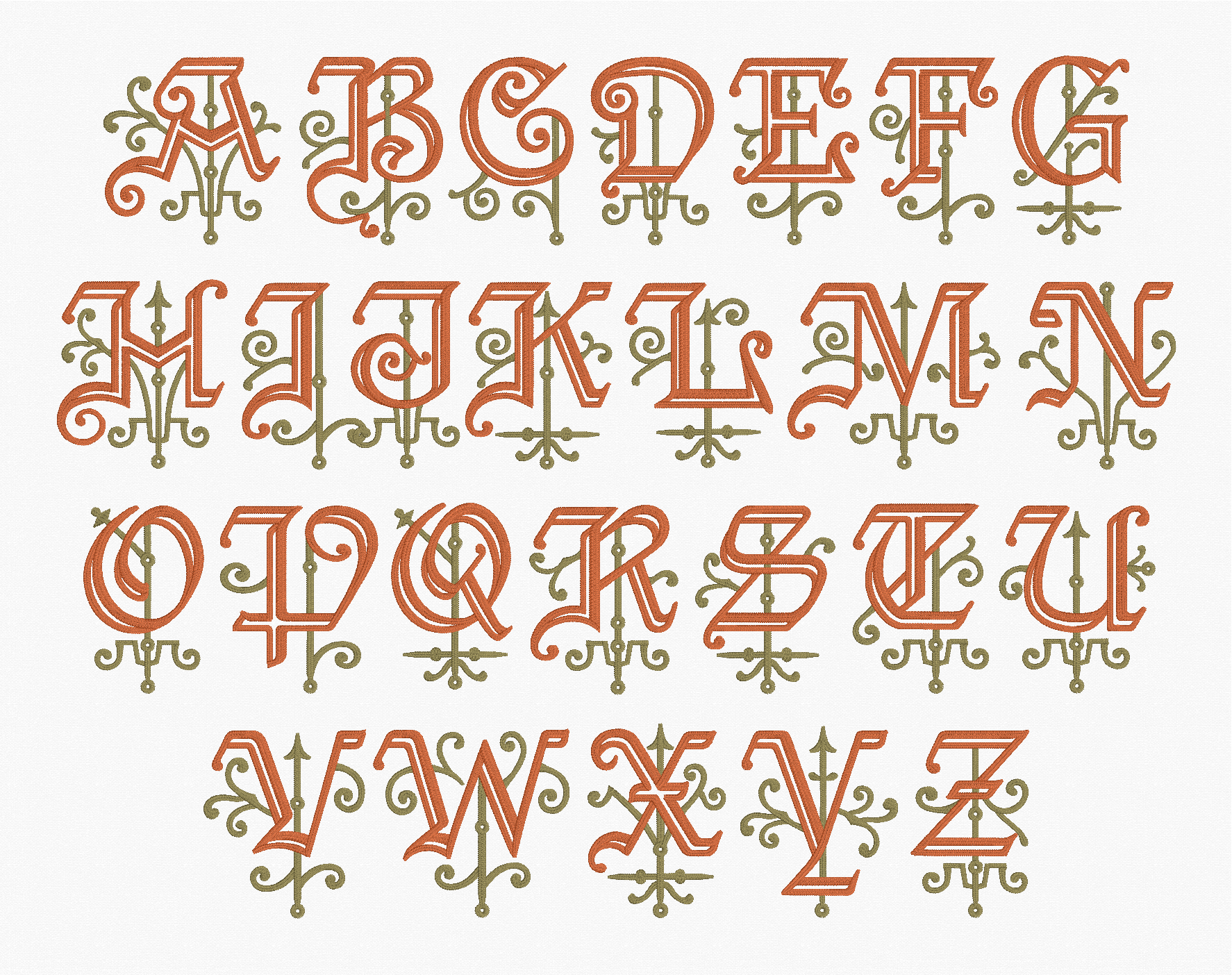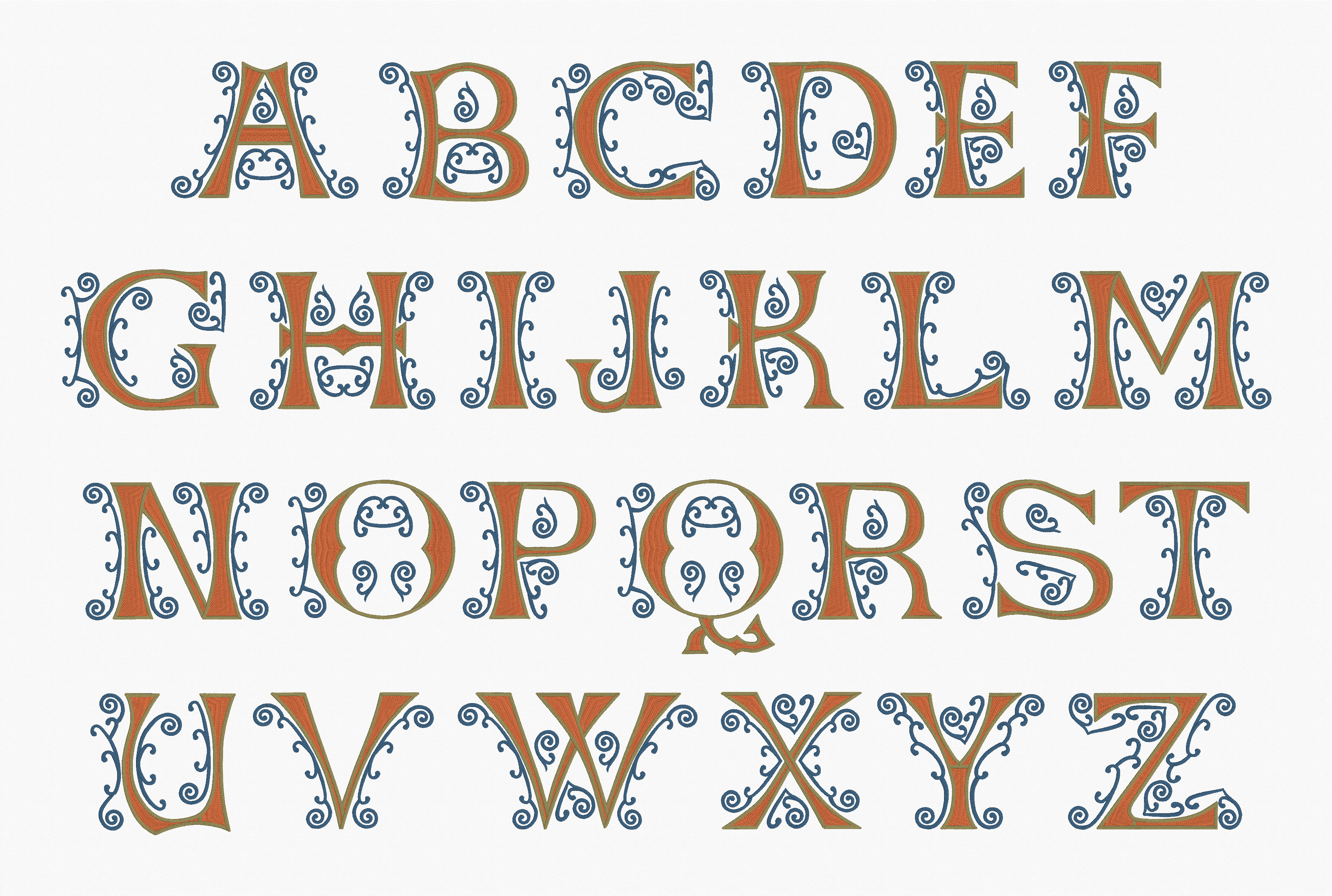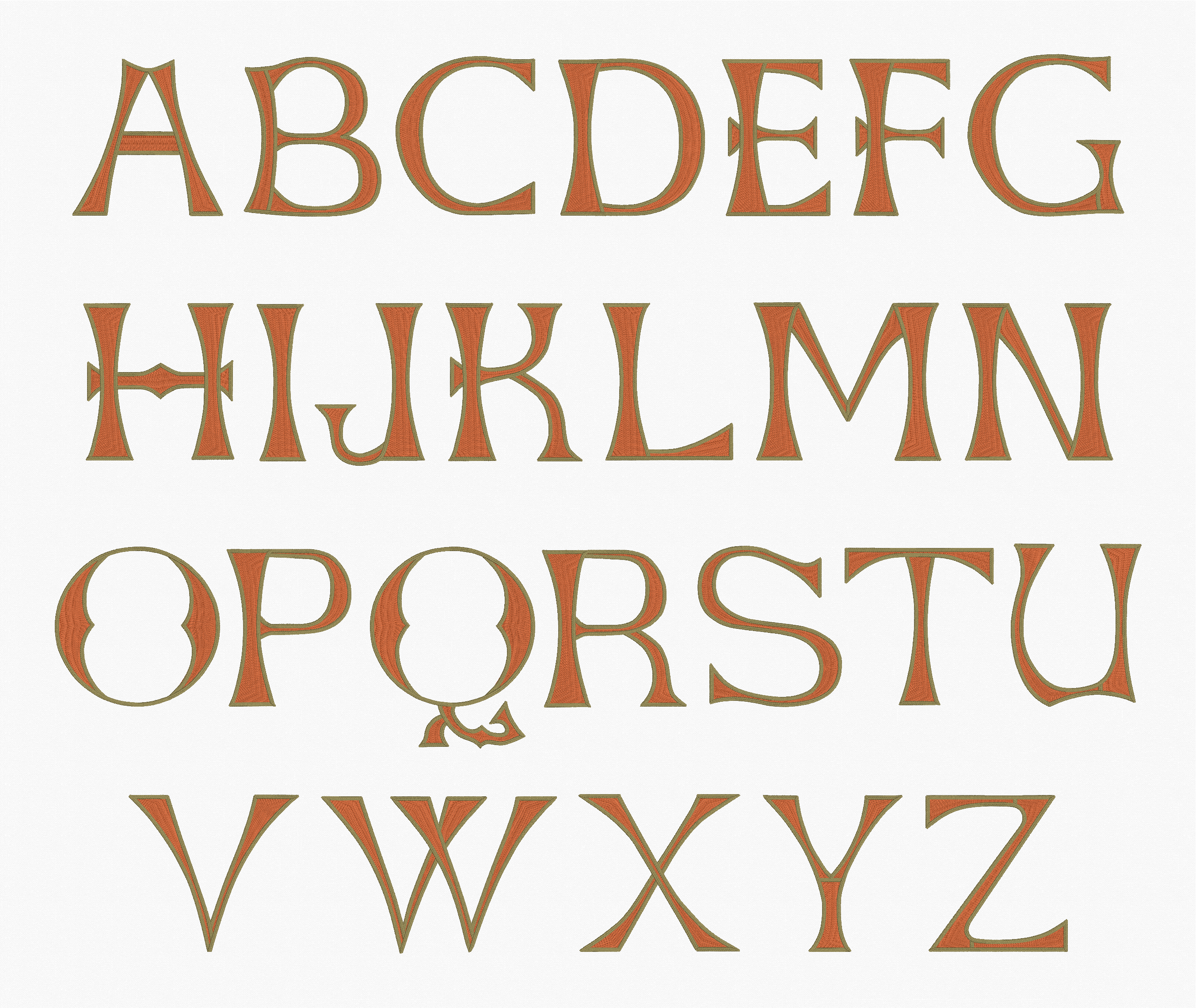 The Embrilliance platform has always automatically switched to textured fills when letter sizes are impractical for satin stitches. For the size range of these fonts, however, we spent a lot of time refining the shapes in the content. From the daunting and detailed Ren Iron, Ren Scroll 3C, and Ren Scroll 2C as well as the simpler, but no less lovely, Ren Morgan and Ren Horst, these fonts maintain their sumptuous, smooth curves even when scaled up to a full 12″ (300mm) in height. The typefaces alone are a stunning value, providing scalable, native version of letters exceeding the function and appeal of traditional large monograms offered as standard stitch-file designs.