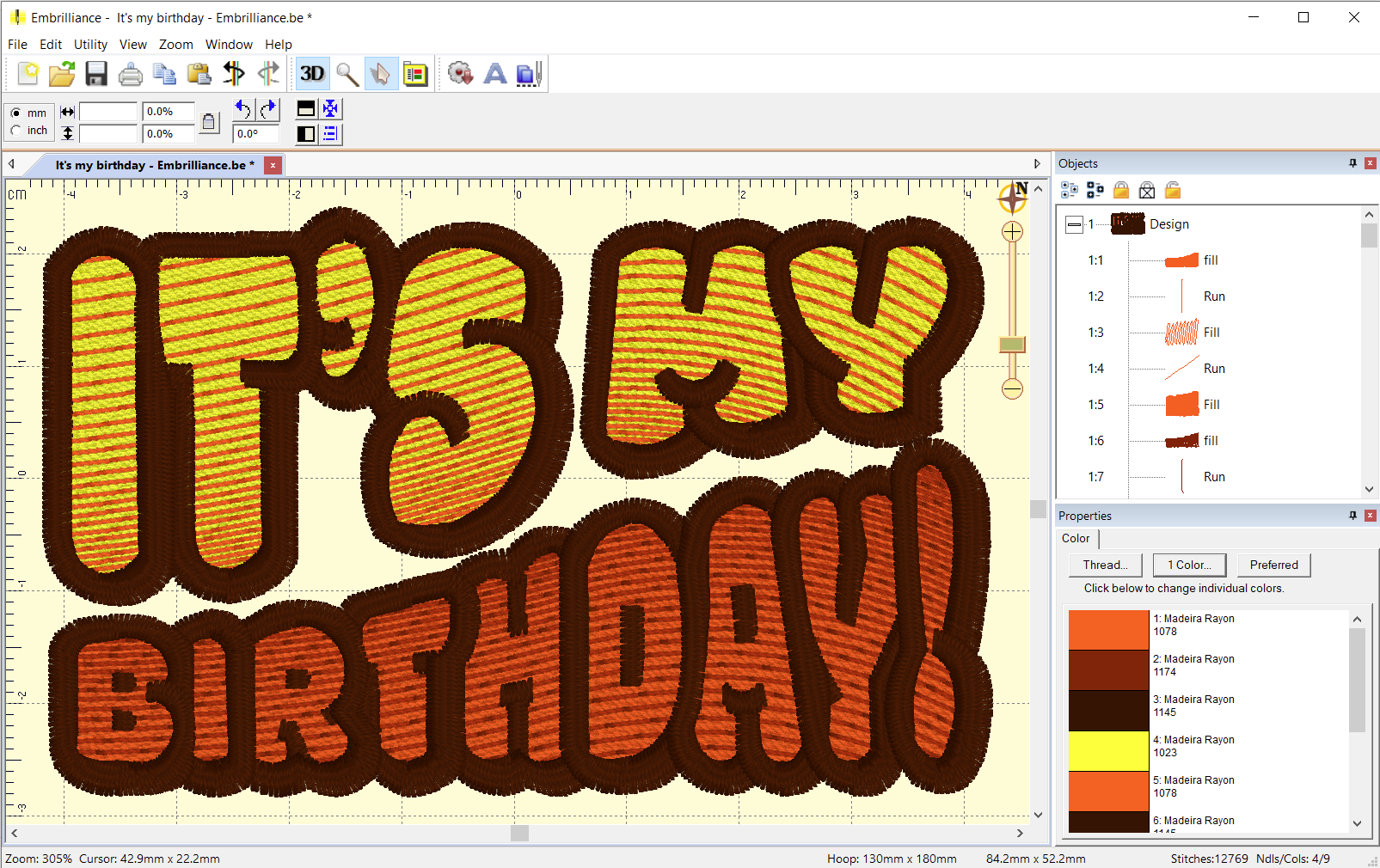 If someone in your life is celebrating a birthday soon, they’ll love the star treatment they’ll get wearing this design from our Erich! He loves retro type, so he set up this old-school warped bubble-letter design in classic colors, then digitized it in StitchArtist Level 3, ready for for stitching on caps and flat goods.