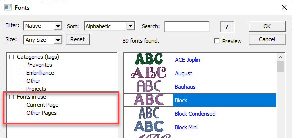 Sometimes, you may have designs loaded on multiple pages.  Now, you can see fonts in use across multiple pages as well as the current page.When you want to be certain you’re using the same font on more than one page, you’re set.