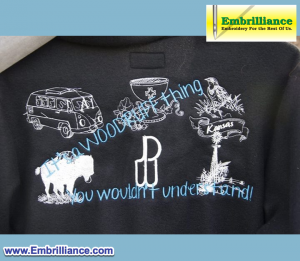 I am so happy I found the Brilliant Embrilliance Facebook group! I don’t get to do embroidery near as much as I like, because I’m a work from home seamstress. And I get very frustrated when I can’t figure out what to do on the software. I think sharing ideas and questions is going to be immensely helpful.  thank you again. And I definitely couldn’t do it without my husband. He hasn’t tried embroidery yet, but used all of his vacation in the month of December to sew those hoodies. He did way more of the actual sewing machine work than I did. I couldn’t keep up with him, measuring and cutting, pinning, etc.”