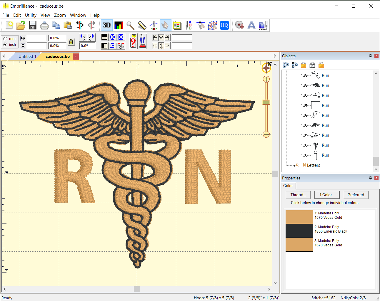 This satin-stitch, sculptural version of the Caduceus symbol created by our own Erich Campbell will enable you to decorate apparel and accessories for your favorite nurses.