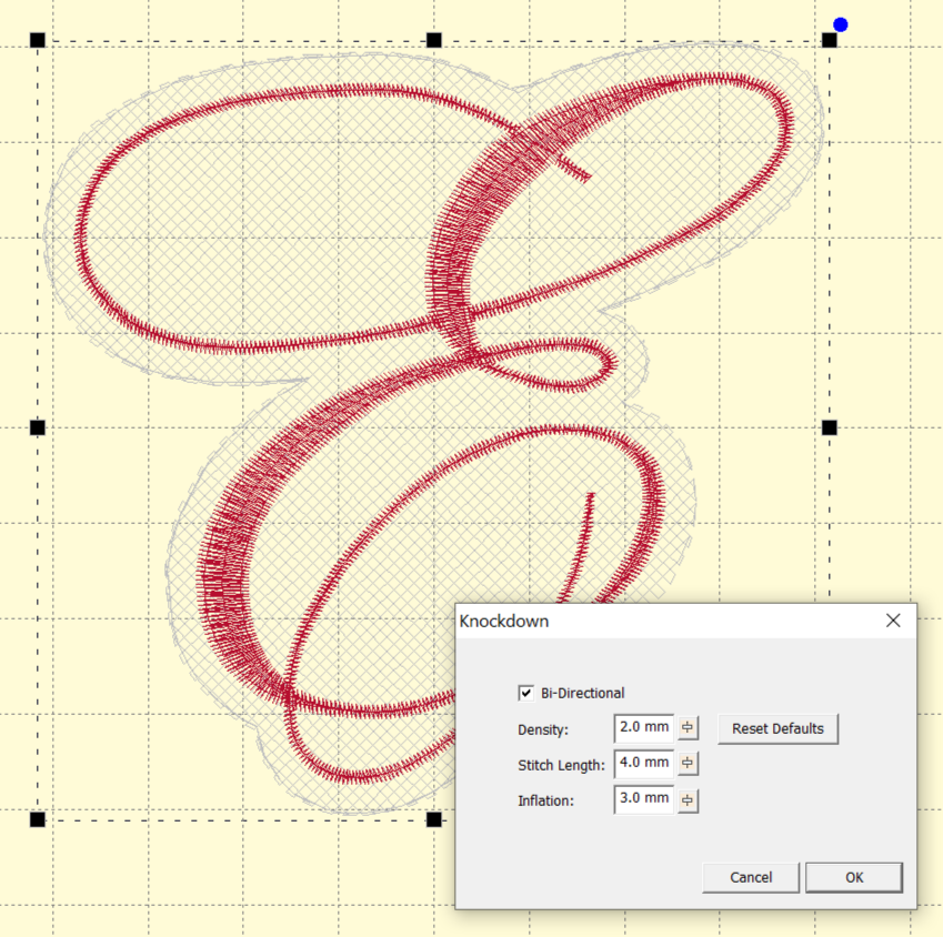 For most purposes, the Knockdown that we released all those years ago has done well. In fact the entire industry has now copied our little global underlay phenomenon and no one would want to embroider terry cloth without it. With that success, we’ve seen where Knockdown could be used on other media, if we allowed the user to make some small changes, such as bi-directional stitching and variable inflation.