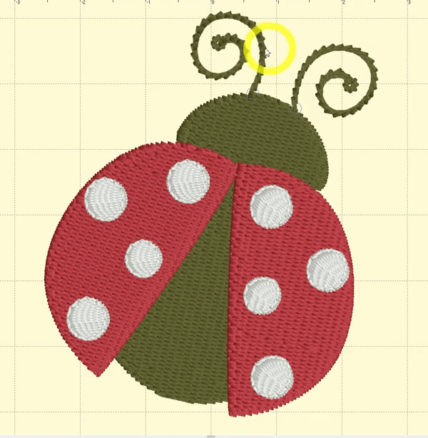 This piece created in StitchArtist by Lisa Shaw shows how placing a rotation point at each location where an element like these antennas meet with the main design can allow you to change the angle of the element without disconnecting them from the body of the design.