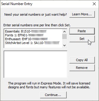 Serial Numbers window Redesign