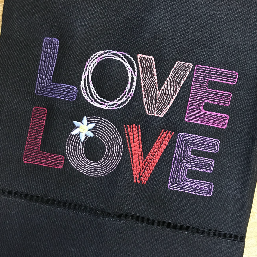 Lisa has provided the JPG image she worked from in the project files.This means that you can work along with the video to recreate this design in your own StitchArtist program using her original source material. Also included in the ZIP file are the daisy accent for the letter O and her finished version of the Sketch & Scribble Double Love design for those that do not have StitchArtist or those who simply want to save the design into their machine’s stitch file format and get right to embroidering.