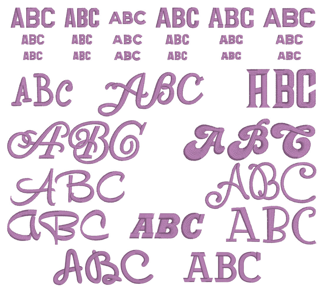 For fun, there is a collection of fonts with various styles from swirly, retro to motorcycle. One major benefit of this set is that a patch can be made, one that exactly outlines a name made using the fonts.